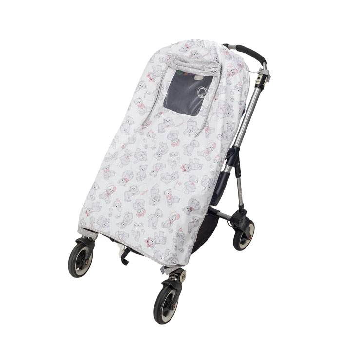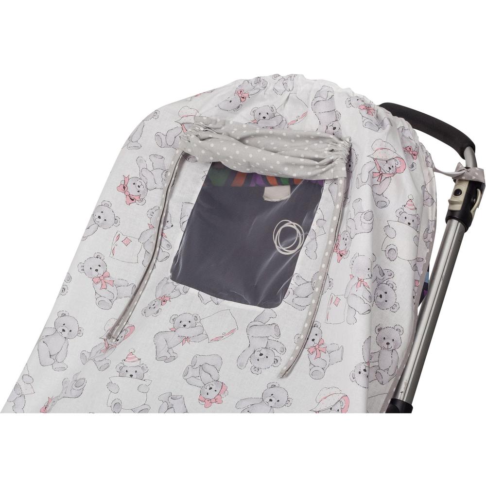 Солнцезащитный тент на коляску Mammie от солнца, насекомых и пуха (серый/розовый)
