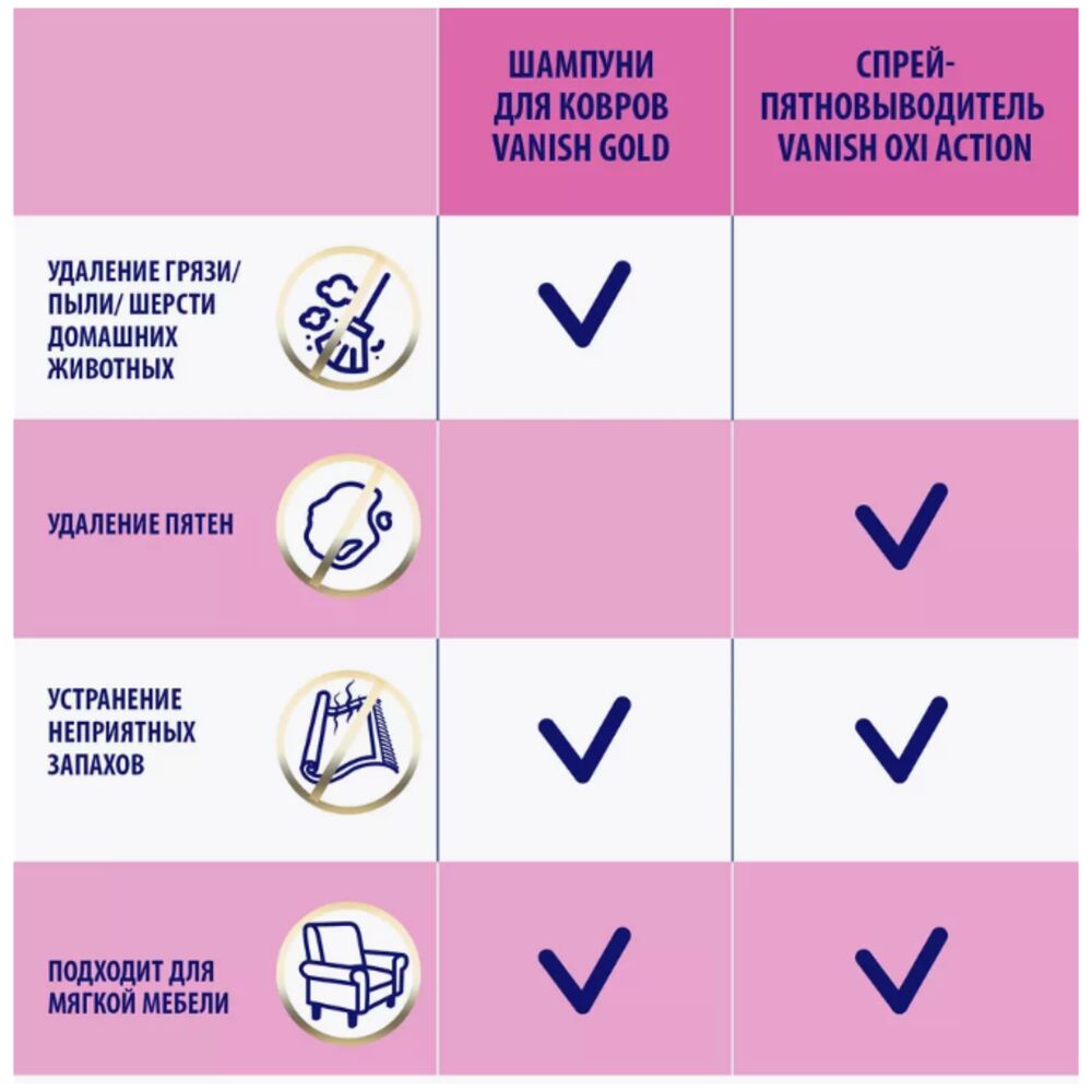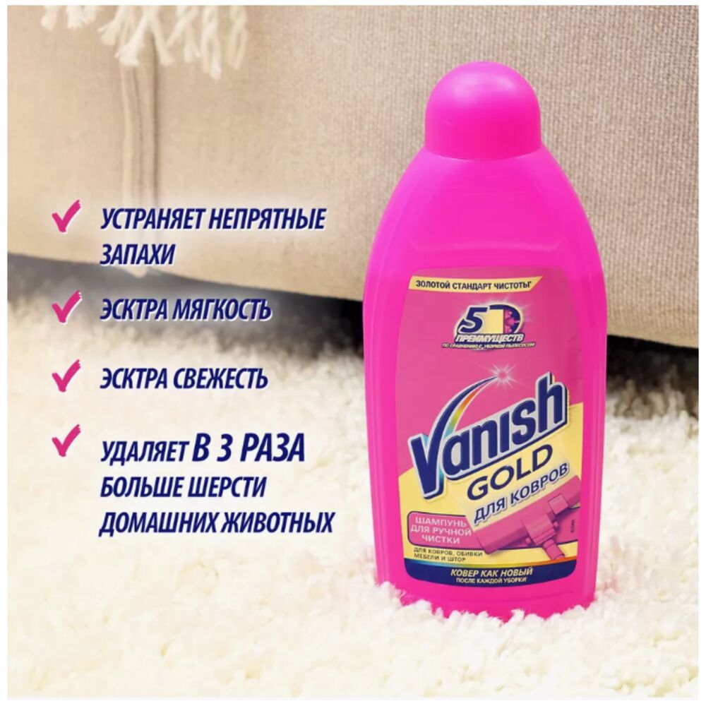 Vanish GOLD Шампунь для ручной чистки ковров 750 мл. Используйте шампунь Vanish для удаления въевшейся грязи и пыли с ковров и обивки. Густой шампунь образует обильную пену и устраняет неприятные запахи, а ваш ковер и обивка мебели сияют чистотой и свежестью - эффект значительно сильнее, чем при обычной уборке пылесосом.