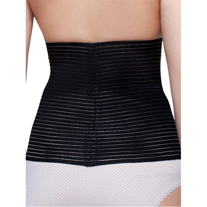 • Бандаж в виде широкого корсетного пояса с упругими косточками корректирует область живота и талию, способствует восстановлению фигуры после родов.