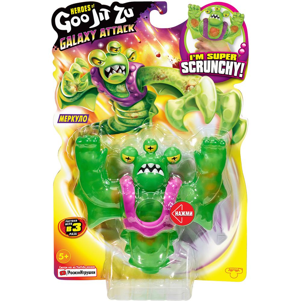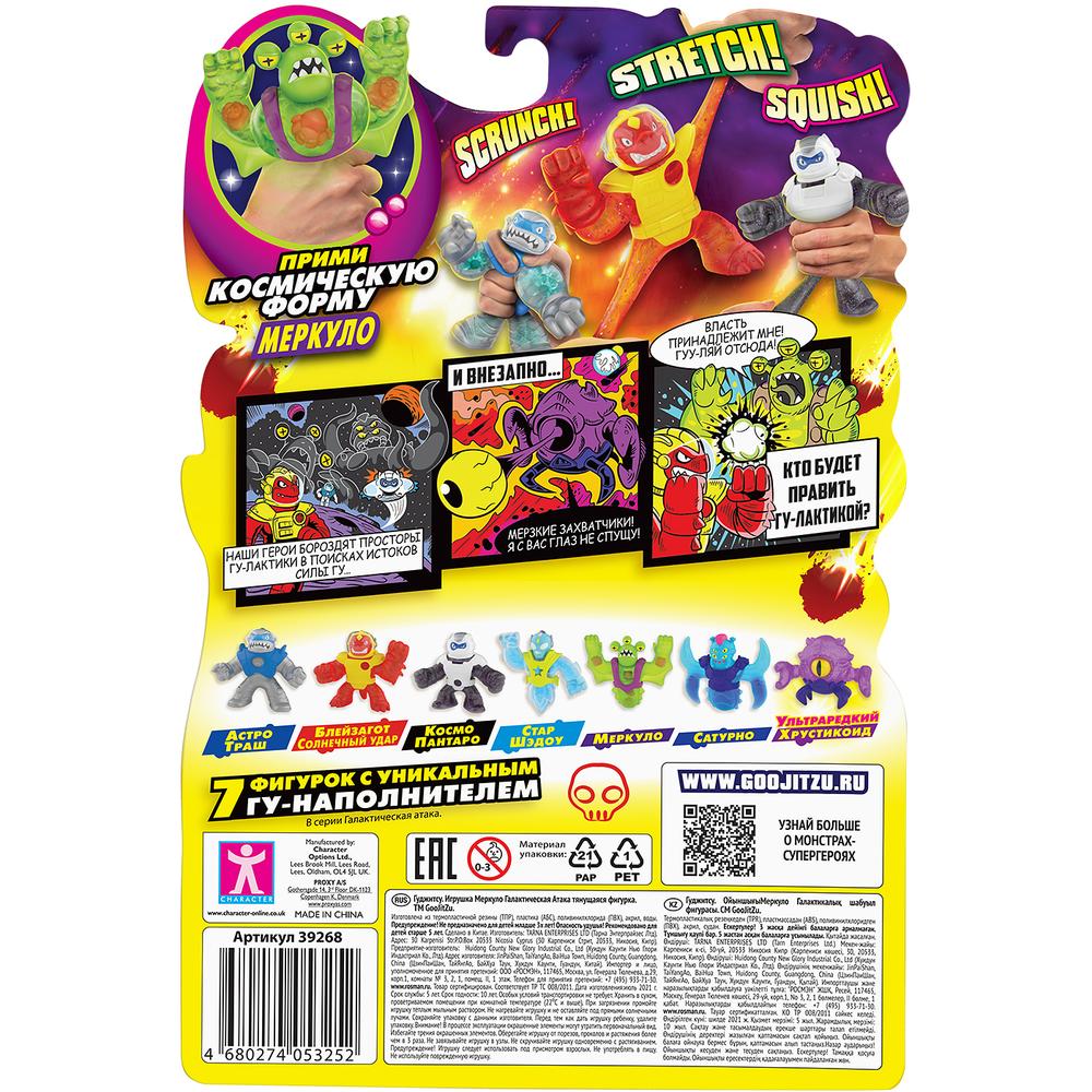 Меркуло - супертягучий инопланетный монстр! Сжимая и растягивая его, можно увидеть инопланетных пауков среди шариков внутри него! Меркуло не похож на земных персонажей Гуджитсу! Игрушки серии Галактическая Атака стали более прочными, чем когда-либо прежде.