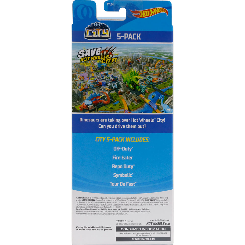 Mattel Hot Wheels 1806/FYL24 Подарочный набор из 5 машинок (City) синий фон