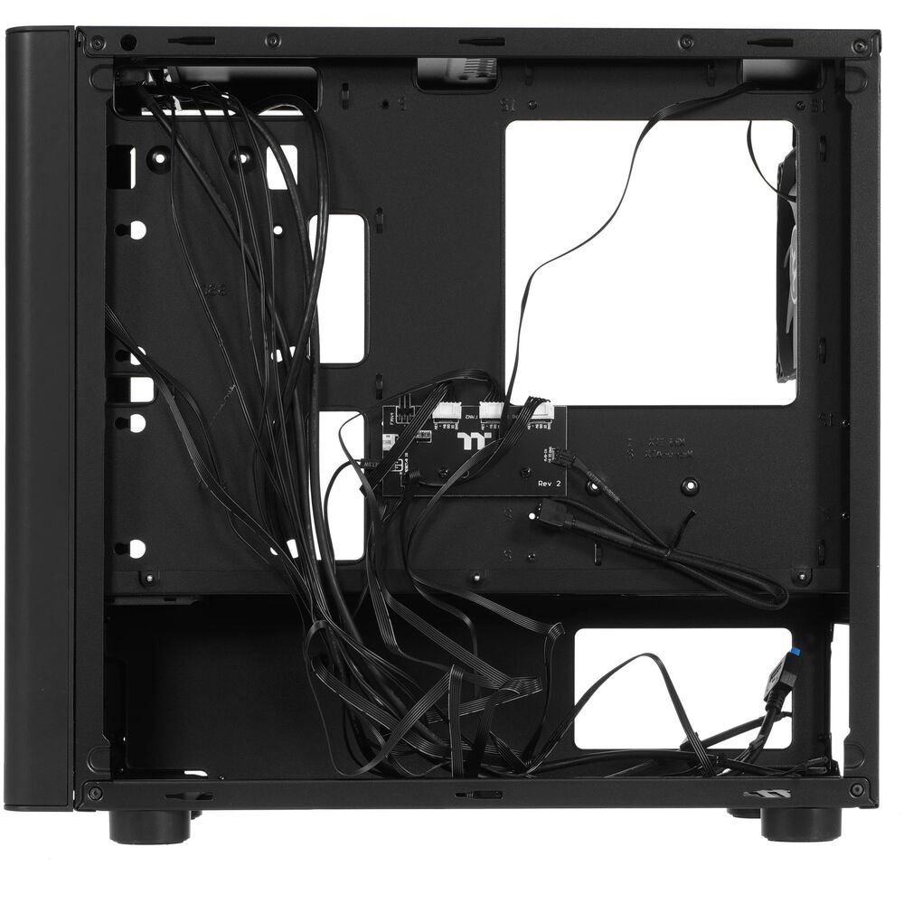 Корпус Thermaltake V150 TG ARGB Breeze Edition [CA-1R1-00S1WN-02] совместим с материнскими платами форм-факторов Micro-ATX и Mini-ITX. Защита компьютера от пыли обеспечивается двумя фильтрами – верхним и нижним. Кнопка питания, порты USB и звуковые разъемы размещены удобно – в передней части верхней панели. Блок питания не входит в комплект. Вам потребуется БП форм-фактора ATX. Черный цвет корпуса гармонично впишется почти в любой интерьер.