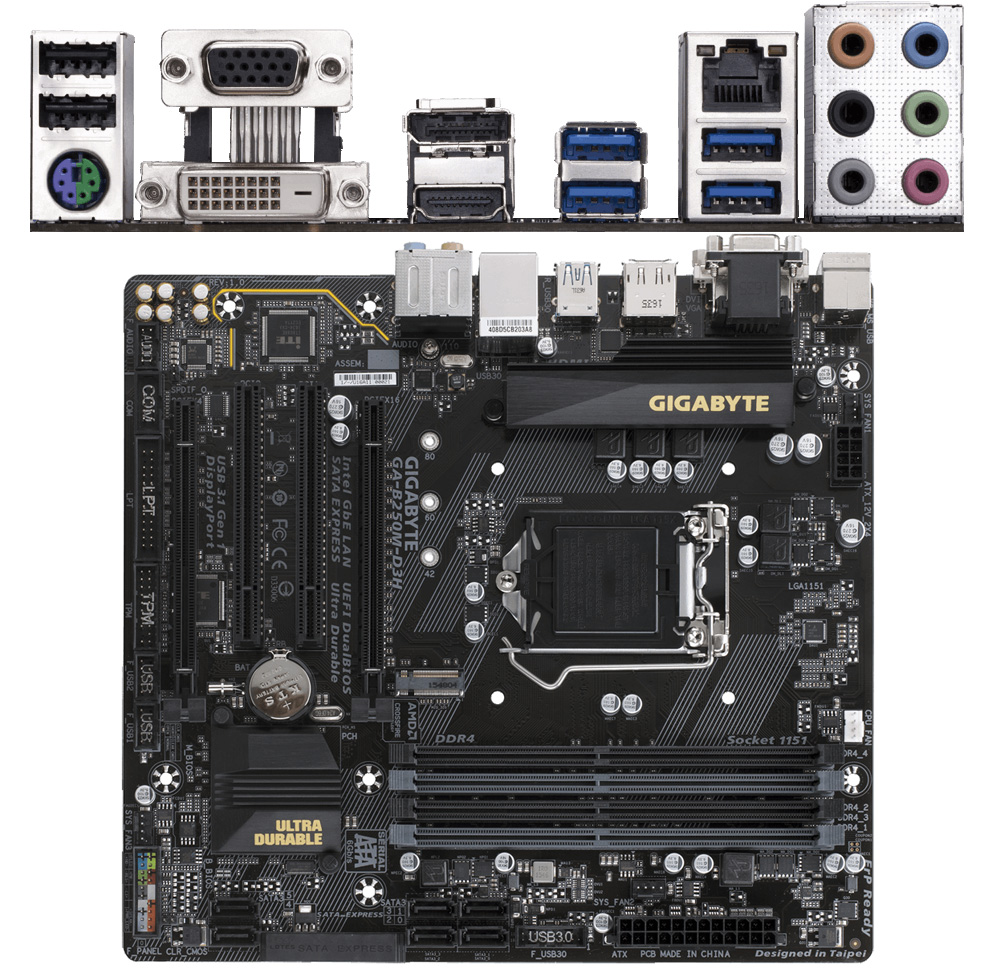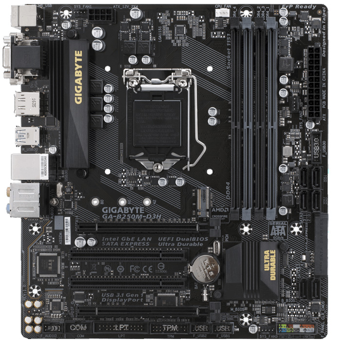 Материнская плата Gigabyte GA-B250M-D3H B250 Socket-1151 4xDDR4, 6xSATA3, M.2, 2xPCI-E16x, 4xUSB3.0, HDMI, DP, DVI, VGA, Glan, mATX