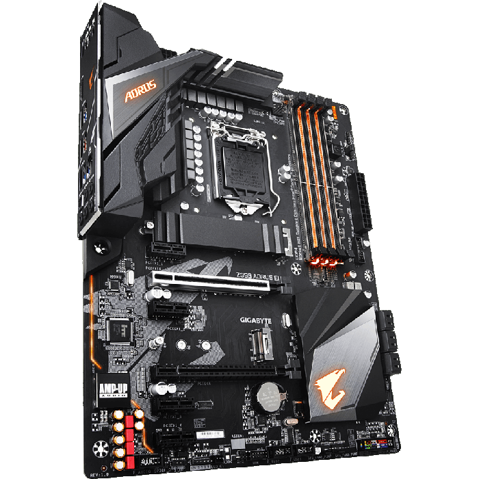 Системная плата AORUS Intel Z390 с 12-ти фазным цифровым модулем питания процессора, закрепленными на винтах элементами системы охлаждения, технологией RGB Fusion 2.0, двумя разъёмами M.2 и одним радиаторомThermal Guard, сетевым адартером Intel® GbE LAN с поддержкой cFosSpeed, и c фронтальными портами USB 3.1 Gen 1 Type-C™