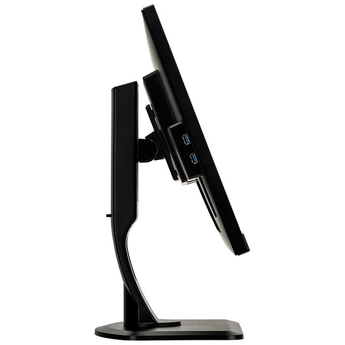 Размещение монитора происходит на поворотной подставке. Дополнительно она позволяет отрегулировать наклон, высоту, перевернуть экран на 90 градусов в портретный режим. Кроме этого, поддержка VESA дает возможность расположить монитор на стене.