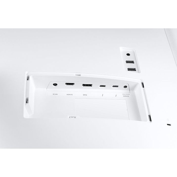 Практическое отсутствие рамки с трех сторон изогнутого экрана повышает комфортность просмотра, а гладкая полированная поверхность задней панели и аккуратно уложенные кабели в сочетании с тонким корпусом монитора могут стать прекрасным дополнение к любому Mac или ПК с поддержкой порта Thunderbolt 3.