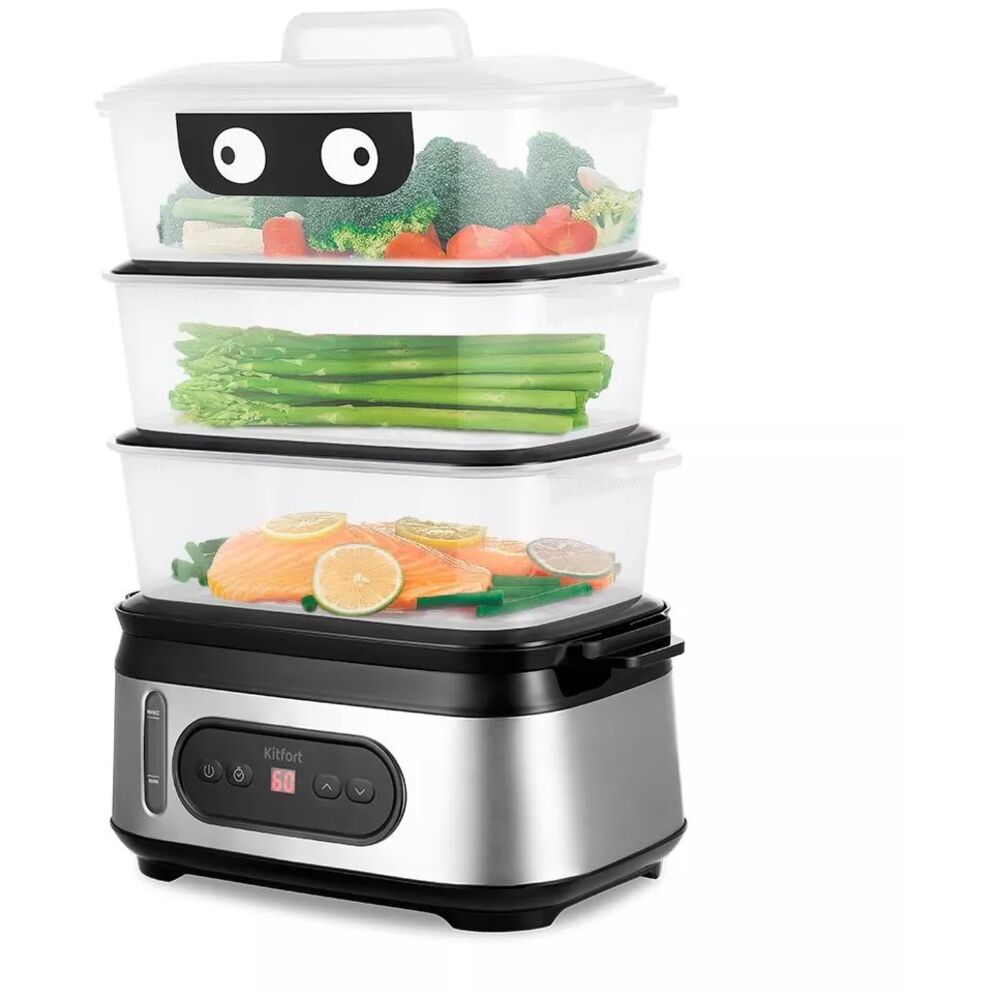 Пароварка КТ-4082 приготовит вам вкусные и питательные блюда, сохранив все полезные витамины и микроэлементы. Достаточно нарезать продукты, уложить их в корзины и выбрать нужное время приготовления. Все остальное пароварка сделает за вас.
