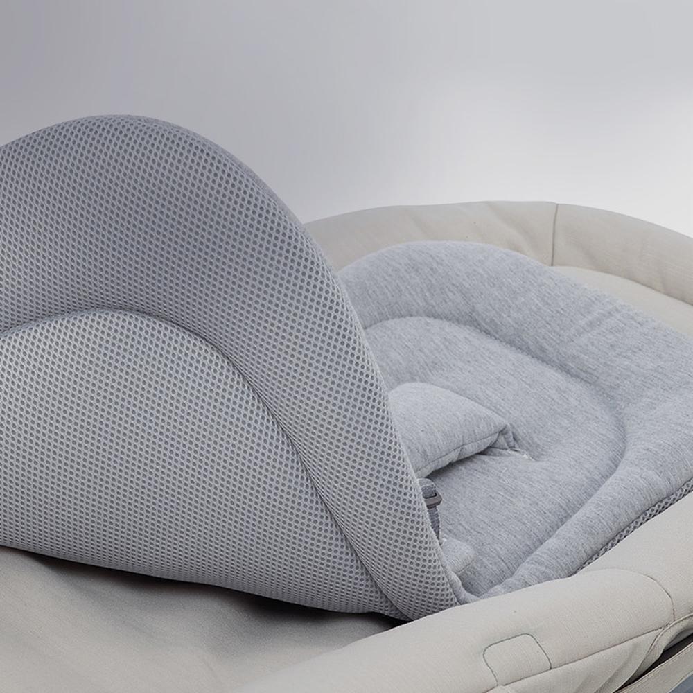Мягкий эргономичный матрасик для новорожденных, поверхностная сторона которого выполнена из дышащей трикотажной ткани с трехмерной сетчатой основой для лучшей циркуляции воздуха.