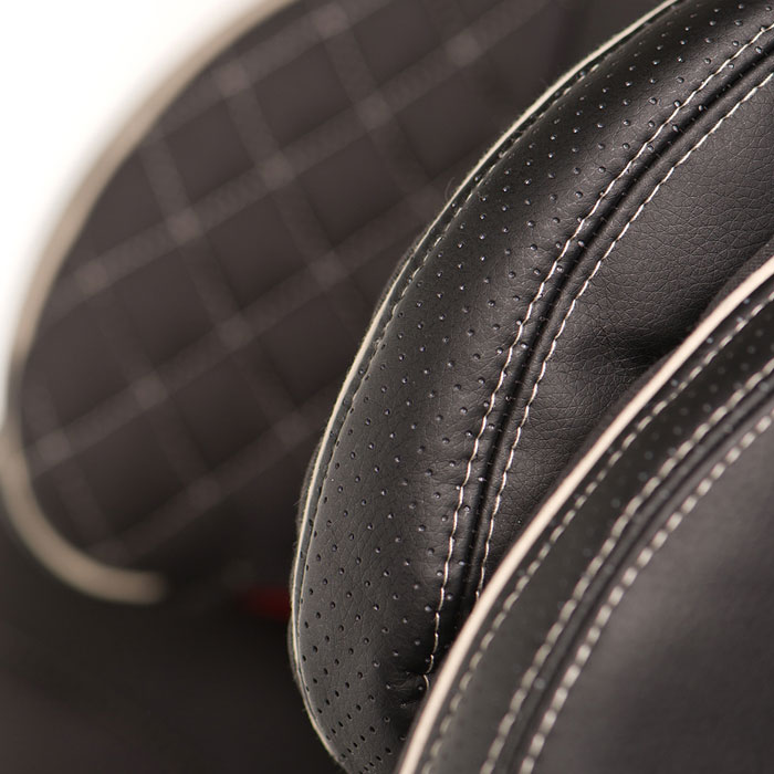Жесткая база автокресла выполнена из особо прочного материала и декорирована мягкой обивкой из эко-кожи и ткани, что создает дополнительный комфорт для ребенка во время поездок.